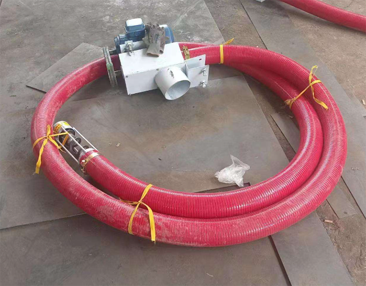 When the Coal Flexible Screw Conveyor is in operation, the feed inlet is placed into the coal to be conveyed. Then, the drive motor is started, and the blades begin to rotate, continuously pushing the coal from the feed inlet into the sleeve, and gradually moving it towards the discharge end along the hose in horizontal, vertical, or curved directions. The coal can then fall into silos, batching machines, or other equipment at the discharge end.