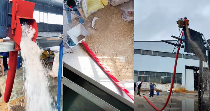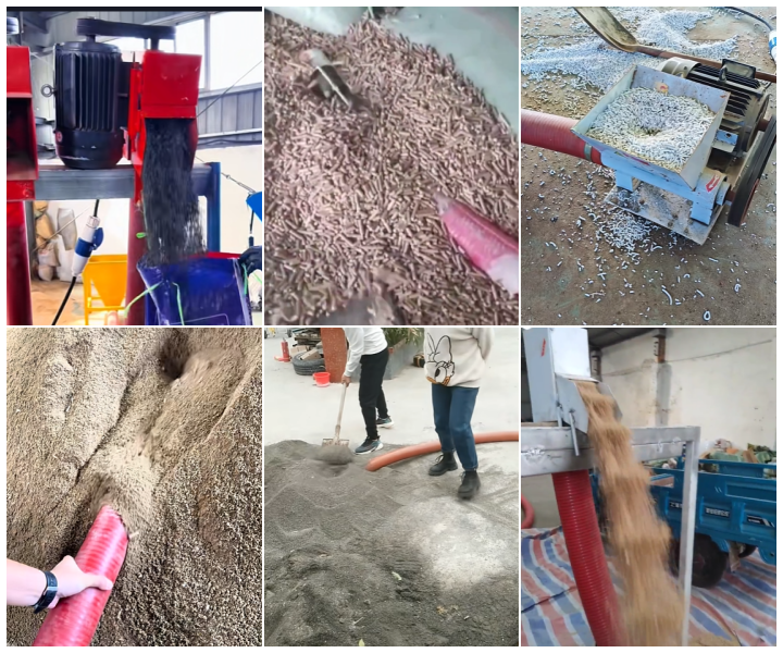 In the feed production industry: Addressing the issues of easily broken pelleted feed and scattered feeding points, a flexible hose screw conveyor is used in conjunction with the feeding system. A 120mm diameter hose is procured, paired with a variable frequency motor for precise speed adjustment. The flexible hose transports feed from the main hopper to multiple feeding points in the aquaculture ponds, and the sealed structure prevents feed from becoming damp and spoiling.