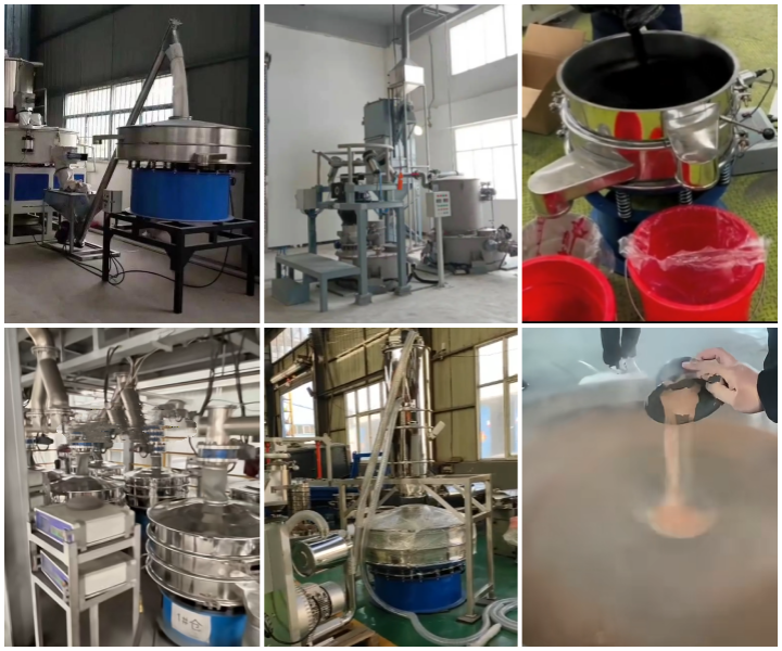 Chemical Industry: Used for sieving easily dusty and agglomerated materials such as paint powder, dye powder, plastic powder, and rubber powder. The ultrasonic system solves the problem of fine powder clogging, improving screening efficiency by 30%-80%; the dust collector controls dust collection rate above 99%, avoiding dust explosion risks and environmental pollution, and ensuring safe operation in the workshop.