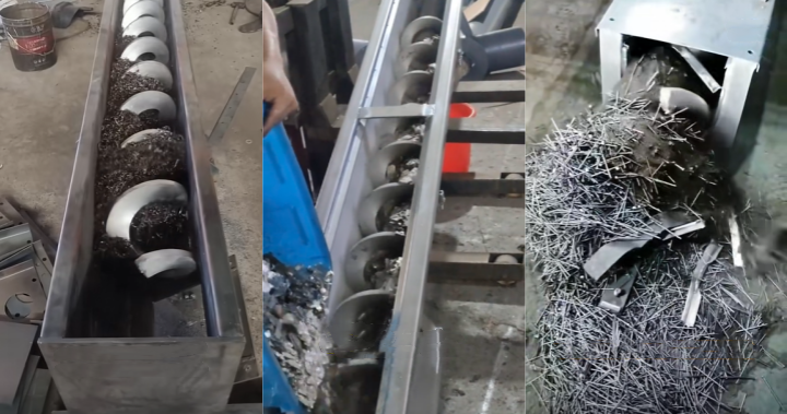 Blocking metal scrap: This type includes heavy, high-hardness steel rebar ends, iron blocks, hardware scraps, and scrap metal castings. The solid drive shaft and high-chromium alloy blades of shaft-driven conveyors provide strong load-bearing capacity and impact resistance, enabling stable conveying of larger pieces of scrap.