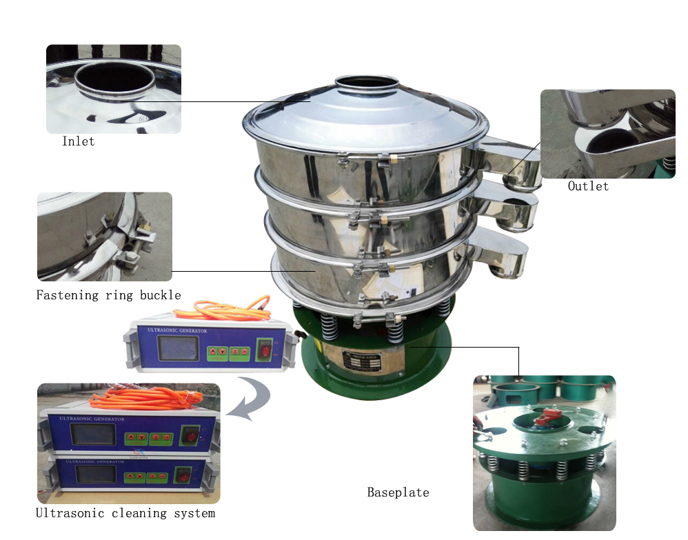 The entire screening process of an Ultrasonic Sieves is accomplished through the combined action of multiple components, including the ultrasonic system, screen, and screen frame.