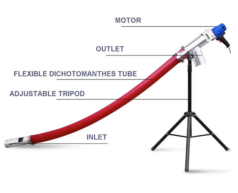 Flexible Conveying Structure: Consists of a highly elastic, wear-resistant hose, food-grade stainless steel spiral blades, and a drive motor.