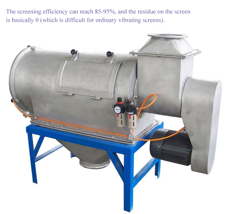 The screening efficiency can reach 85-95%, and the residue on the screen is basically 0 (which is difficult for ordinary vibrating screens).