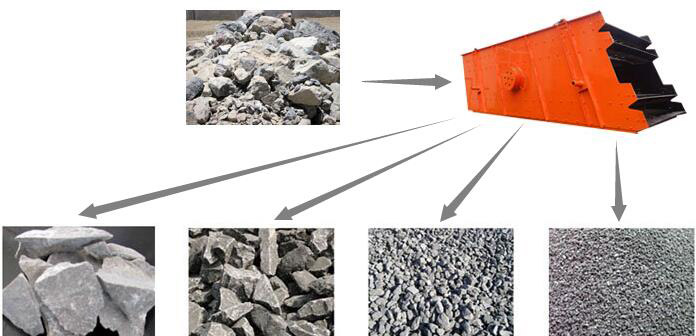Using small amplitude, high frequency, the inclination of the screen varies from 15 to 30 degrees, the feeding particle size is 400mm, and the processing capacity per hour ranges from 80-620 tons.