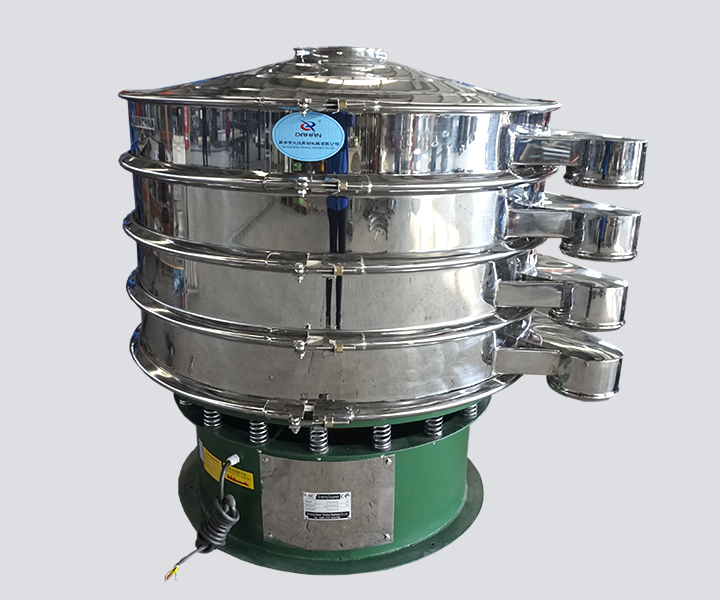 After the vibrating sifter is started, the heavy hammer is driven by the motor to vibrate, and the screen body produces horizontal, vertical, and inclined three-dimensional motion, so that the material is thrown up on the screen and rotates outward from the center to the discharge port to be discharged. The material is discharged in the screen. During the movement of the net, fine particles or liquids pass through the screen, and the materials are screened, classified or filtered by selecting and installing the corresponding screen and the number of screen layers. The sorted materials are automatically discharged from their respective outlets.